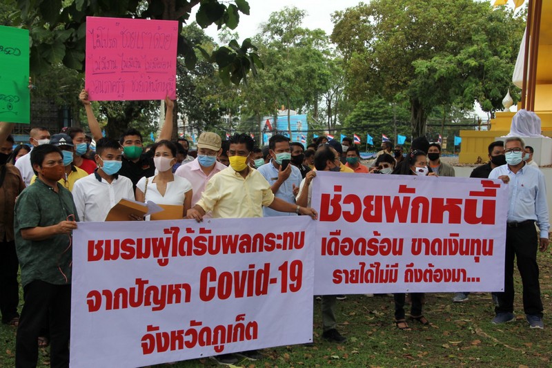 ภูเก็ตกลุ่มชมรมผู้ได้รับผลกระทบโควิด-19 จังหวัดภูเก็ต จากสาขาอาชีพต่างๆ มาติดตามความคืบหน้ากรณีที่ทางตัวแทนชมรมฯ ได้ยื่นหนังสือให้กับรองนายกฯเพื่อขอความช่วยเหลือจากทางรัฐบาล