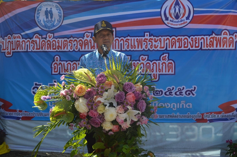 เมื่อวันที่ 29 มกราคม 2559 เวลา 14.30 น. ณ ที่ว่าการอำเภอเมืองภูเก็ต นายจำเริญ ทิพญพงศ์ธาดา ผู้ว่าราชการจังหวัดภูเก็ต เป็นประธานเปิดและมอบนโยบายการปิดล้อมตรวจค้นพื้นที่แพร่ระบาดยาเสพติดโดยมี นายสุพจน์ ชนะกิจ นายอำเภอเมืองภูเก็ต พ.ต.อ. พีระยุทธ์ การะเจดีย์ รองผู้บังคับการตำรวจภูธรจังหวัดภูเก็ต พร้อมหัวหน้าส่วนราชการ ทหาร ฝ่ายปกครอง กำนัน ผู้ใหญ่บ้าน สมาชิก อส. / ชรบ.จำนวน 251 นาย เข้าร่วม