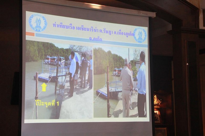 วาระการประชุมที่สำคัญได้แก่เรื่องการขออนุญาตสร้างสิ่งล่วงล้ำลำน้ำประเภทโป๊ะ ขออนุญาตสร้างสิ่งล่วงล้ำลำน้ำประเภทสะพานข้ามคลอง และขออนุญาตสร้างสิ่งล่วงล้ำลำน้ำประเภทกระชังเลี้ยงหอยโดย ที่ประชุมมีมติอนุมัติในหลักการให้สร้างสิ่งล่วงล้ำลำน้ำได้ พร้อมนี้ทางที่ประชุมได้มีมติให้ทางสำนักงานเจ้าท่าภูมิภาคสาขาภูเก็ต ได้กำกับดูแลเรื่อง ความปลอดภัยในเรื่องของความปลอดภัยทางน้ำ โดยได้มีการเน้นย้ำในเรื่องที่นักท่องเที่ยวต้องโชว์พาสปอร์ตทุกครั้ง ต้องมีมาตรการสวมเสื้อชูชีพเมื่อมีการเดินทางทางเรือ ส่วนใน เรื่องการขออนุญาตสร้างสิ่งล่วงล้ำลำน้ำประเภทสะพานข้ามคลอง ได้สั่งการให้ท้องถิ่นอำเภอ สำนักงานเจ้าท่าภูมิภาคได้ ดูแลเรื่องคุณภาพน้ำ การพัฒนาคลอง ดูแลเรื่องสิ่งแวดล้อมและความปลอดภัยส่วนเรื่องการขออนุญาตสร้างสิ่งล่วงล้ำลำน้ำประเภทกระชังเลี้ยงหอย ได้สั่งการให้สำนักงานเจ้าท่าภูมิภาคประสานงานกับทางสำนักงานประมงจังหวัด โดยให้เกษตรกรทุกรายต้องขอใบอนุญาตการขอสิ่งล่วงล้ำลำน้ำ ต้องบำบัดของเสีย กำกับดูแลความปลอดภัยของโครงสร้างอย่าล่วงล้ำลำน้ำและ ดูแลความปลอดภัย