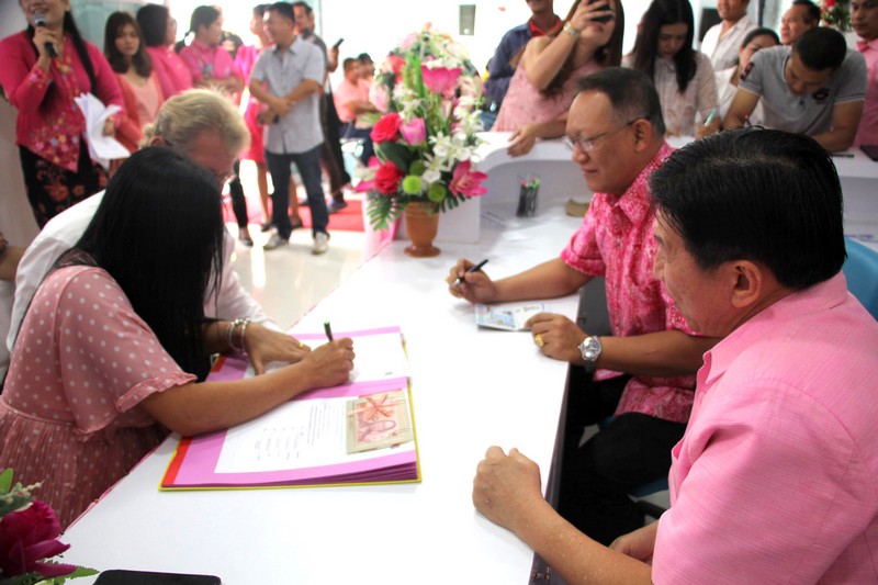 สำหรับคู่รักที่ร่วมจดทะเบียนสมรสในปีนี้ ตั้งแต่ช่วงเช้าจนถึงเวลาประมาณ 10.00 น. มีทั้งหมดประมาณ 35 คู่ ส่วนใหญ่เป็นคู่รักชาวไทยทั้งที่เพิ่งแต่งงานใหม่ และบางคู่แต่งงานอยู่กินเป็นครอบครัวแต่เพิ่งมาจดทะเบียนสมรส ขณะเดียวกันก็มีคู่รักที่เป็นชาวไทยแต่งงานกับชาวต่างชาติ ร่วมจดทะเบียนสมรส จำนวน 2 คู่