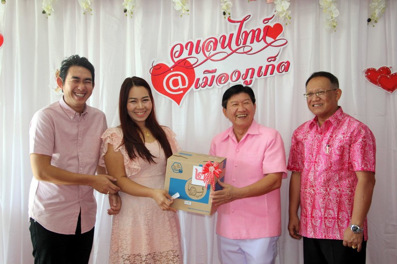 ทั้งนี้ ได้มี นาย ประกอบ วงศ์มณีรุ่ง รองผู้ว่าราชการจังหวัดภูเก็ต เดินทางมาเป็นประธานมอบทะเบียนสมรส และรางวัลให้แก่คู่รักหนุ่มสาว โดยมี ว่าที่ร้อยตรี วิกรม จากที่ นายอำเภอเมืองภูเก็ต นาย สุธี ศิริอนันต์ ปลัดอำเภอเมืองภูเก็ต ร่วมเป็นสักขีพยาน