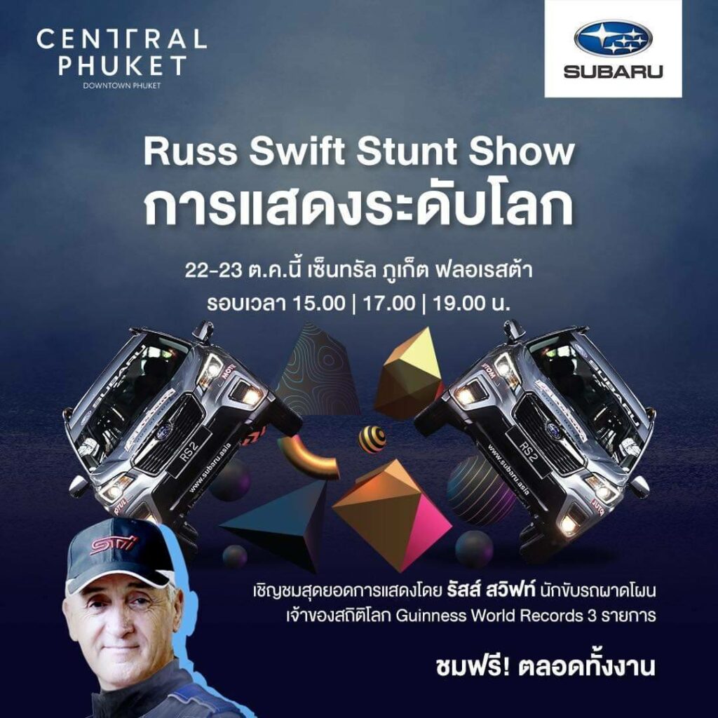 งาน Subaru Russ Swift Stunt Show การแสดงขับรถผาดโผนระดับโลก โดย คุณรัสส์ สวิฟท์ เจ้าของสถิติโลก Guinness World Record 3 รายการ 22 – 23 ต.ค. 65 นี้