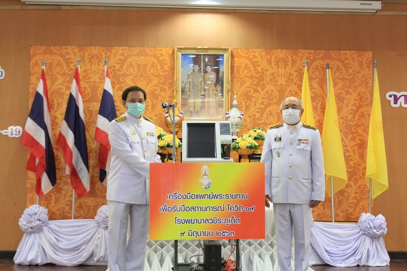 นายแพทย์ธนิศ เสริมแก้ว กล่าวว่า ด้วยพระมหากรุณาธิคุณ พระบาทสมเด็จพระวชิรเกล้าเจ้าอยู่หัว รัชกาลที่ 10 พระราชทานเครื่องมือแพทย์ (เครื่องช่วยหายใจชนิดควบคุมปริมาตรและความดัน) จำนวน 1 เครื่อง ให้โรงพยาบาลวชิระภูเก็ตเพื่อใช้สำหรับการตรวจรักษาผู้ป่วยที่เข้ารับการรักษาในโรงพยาบาลฯ เนื่องจากการแพร่ระบาดของเชื้อไวรัสโคโรนา 2019 (โควิด-19) ในวันนี้ จึงมีพิธีรับมอบเครื่องมือแพทย์พระราชทาน (เครื่องช่วยหายใจชนิดควบคุมปริมาตรและความดัน) จำนวน 1 เครื่องดังกล่าว
