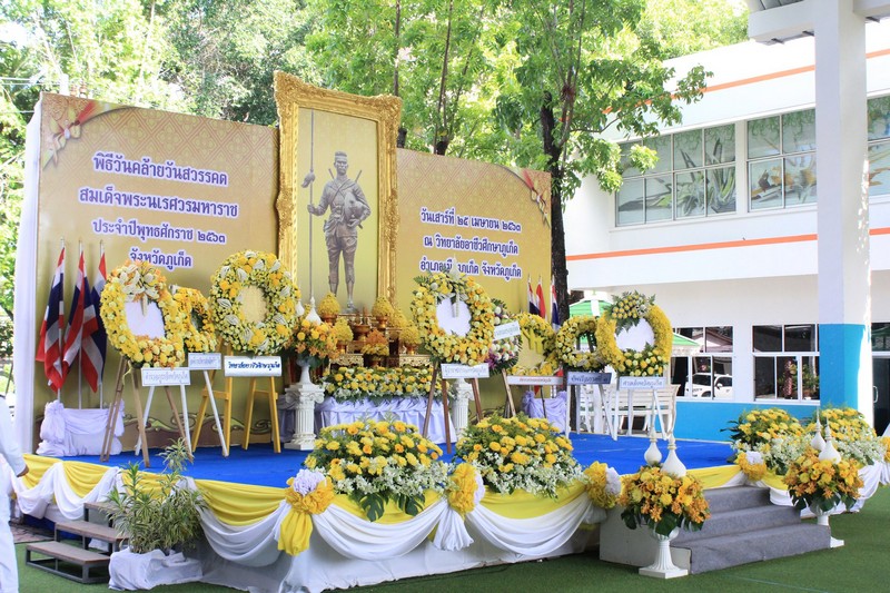 เมื่อวันที่ 25 เมษายน 2563 ที่ลานอาชีวะสัมพันธ์ วิทยาลัยอาชีวะศึกษา นายภัคพงศ์ ทวิพัฒน์ ผู้ว่าราชการจังหวัดภูเก็ต เป็นประธานในพิธีวางพวงมาลาถวายราชสักการะเนื่องในวันคล้ายวันสวรรคตสมเด็จพระนเรศวรมหาราชของจังหวัดภูเก็ตโดยมี ข้าราชการ ศาล ทหาร ตำรวจเข้าร่วม โดยการจัดพิธีวงพวงมาลาถวายราชสักการะเพื่อเป็นการน้อมรำลึกถึงพระมหากรุณาที่คุณแห่งองค์สมเด็จพระนเรศวรมหาราช ที่ทรงมีต่อประเทศชาติและประชาชนอย่างอเนกอนันต์ จนทำให้สามารถธำรงความเป็นเอกราชมาได้ตราบทุกวันนี้