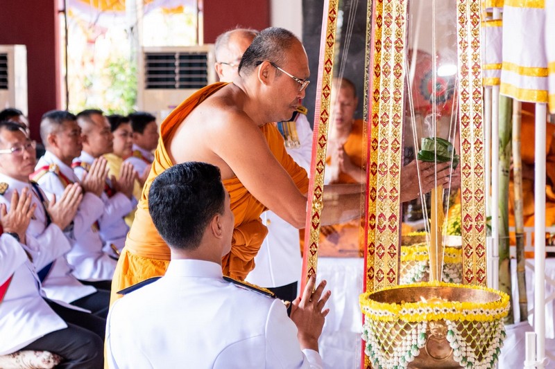 พิธีเริ่มต้นขึ้นเมื่อ เวลา 09.00 น. นายภัคพงศ์ ทวิพัฒน์ ผู้ว่าราชการจังหวัดภูเก็ต ประธานในพิธีเดินทางมาถึงบริเวณพิธี ทำการจุดธูปเทียนบูชาพระรัตนตรัย เจ้าหน้าที่อาราธนศีล พระสงฆ์ให้ศีล ผู้ว่าราชการจังหวัดภูเก็ตเชิญใบพลู 7 ใบ ถวายประธานสงฆ์เจิมใบพลู ประธานสงฆ์ถวายใบพลู 7 ใบ เเด่พระสงฆ์เถราจารย์ เวลา 10.00 น. พระเถราจารย์ดับเทียนชัย พระสงฆ์ 30 รูป เจริญพระพุทธมนต์คาถาดับเทียนชัย เจ้าหน้าที่ประโคมฆ้องชัย ดุริยางค์บรรเลงมหาฤกษ์ ประธานสงฆ์พรมน้ำพระพุทธมนต์ที่ขันน้ำสาคร และมอบให้ประธานในพิธี ผู้ว่าราชการจังหวัดภูเก็ต กล่าวคาถาตักน้ำผ่านไมโครโฟน เจ้าหน้าที่ส่งที่ตักน้ำให้ผู้ว่าราชการจังหวัดภูเก็ต เพื่อตักน้ำอภิเษกจากขันน้ำสาครใส่คนโท แล้วปิดฝาคนโทให้สนิท ผู้ว่าราชการจังหวัดภูเก็ตและข้าราชการประเคนภัตตาหารแด่พระสงฆ์ 30 รูป จากนั้นถวายจตุปัจจัยไทยธรรมแด่พระสงฆ์ ประธานสงฆ์อนุโมทนา ผู้ว่าราชการจังหวัดภูเก็ตนำกรวดน้ำ รับพร เวลา 12.00 น. ตั้งพิธีบายศรีเวียนเทียนสมโภชน้ำอภิเษก พราหมณ์ทำพิธีบายศรี และเบิกแว่นเวียนเทียน แว่นที่ 1 และส่งให้ผู้ว่าราชการจังหวัดภูเก็ต เมื่อผู้ว่าราชการจังหวัดภูเก็ต รับแว่นเวียนเทียนจากพราหมณ์แล้ววักแว่นที่จุดเทียนเข้าหาตัว 3 ครั้ง แล้วใช้มือขวาโบกควันออก แล้วส่งต่อให้คนที่อยู่ซ้ายมือ เวียนไปจนครบ 3 รอบ เมื่อครบแล้วคนสุดท้ายส่งแว่นเวียนเทียนให้พราหมณ์ผู้ทำหน้าที่เบิกแว่นเทียน เป็นอันเสร็จพิธี