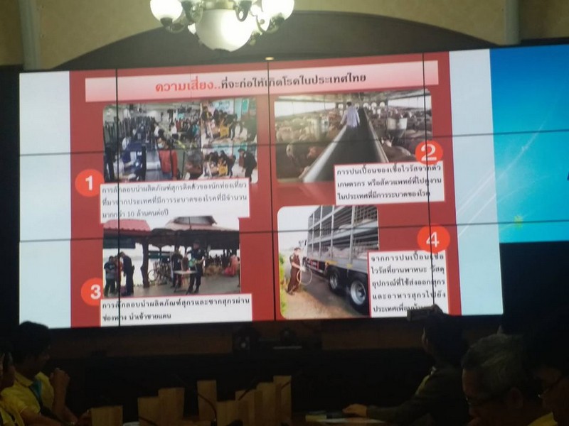 โดยที่ประชุมได้รับทราบสถานการณ์โรคอหิวาต์แอฟริกาในสุกร ขณะนี้ ครม. มีมติให้เป็นวาระแห่งชาติและเป็นเรื่องสำคัญ แม้จะไม่สามารถแพร่ไปสู่คนได้ แต่ไวรัสแพร่ระบาดในกลุ่มสุกรด้วยกันก็ตาม โดยจะมีผลด้านเศรษฐกิจการท่องเที่ยว กลุ่มผู้ประกอบการ ทั้งเกษตรกรผู้เลี้ยงสุกร ธุรกิจต่อเนื่อง ฟาร์มสุกร ผู้ส่งออก นำเข้า ความเชื่อมั่นและภาพลักษณ์ของจังหวัดภูเก็ต