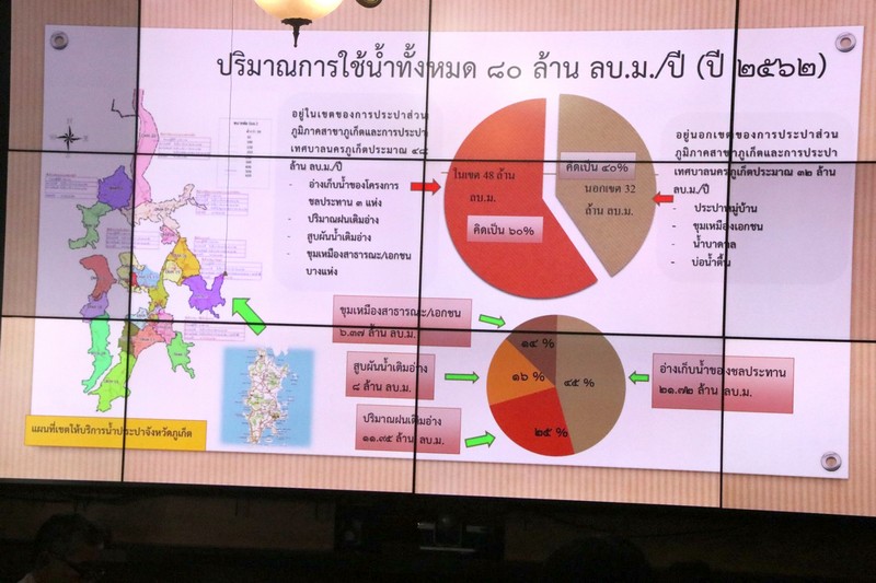 รองผู้ว่าราชการจังหวัดภูเก็ต กล่าวว่า ในปี พ.ศ. 2562 จังหวัดภูเก็ตมีปริมาณการใช้น้ำในการอุปโภคบริโภคและการท่องเที่ยว
