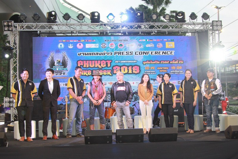 เมื่อวันที่ 22 มีนาคม 2562 เวลา 18.00 น. นายภัคพงศ์ ทวิพัฒน์ ผู้ว่าราชการจังหวัดภูเก็ต เป็นประธานในพิธีแถลงข่าวการจัดงานฉลองครบรอบ 25 ปี “ภูเก็ตไบค์วีค 2019” ภายใต้คอนเซ็ปต์ “WORLD RIDE TOGETHER” โดยมีนายวิทยา สิงห์ฆาฬะ รักษาการนายกสมาคมภูเก็ตไบค์วีค นายยืนยง โอภากุล หรือแอ๊ด คาราบาว นางกนกกิตติกา กฤตย์วุฒิกร ผู้อำนวยการการท่องเที่ยวแห่งประเทศไทย สำนักงานภูเก็ต นางสาววิไลพร ปิติมานะอารี ผู้อำนวยการอาวุโส ศูนย์การค้าเซ็นทรัล เฟสติวัล สาขาภูเก็ต นางศิรวี วาเลาะห์ ท่องเที่ยวและกีฬาจังหวัดภูเก็ต นายบุญ ยงสกุล ประธานกรรมการ บริษัทโบ๊ท พัฒนา ร่วมแถลงข่าวด้วย