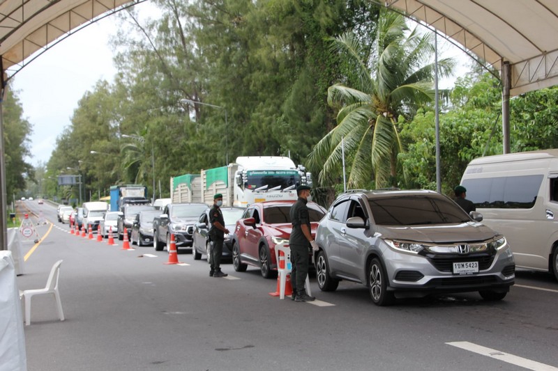 บรรยากาศที่ด่านตรวจท่าฉัตรไชยยังคงมีประชาชนเดินทางเข้ามายังจังหวัดภูเก็ต แต่ไม่มากนัก