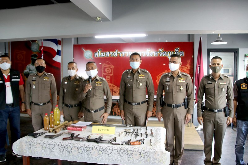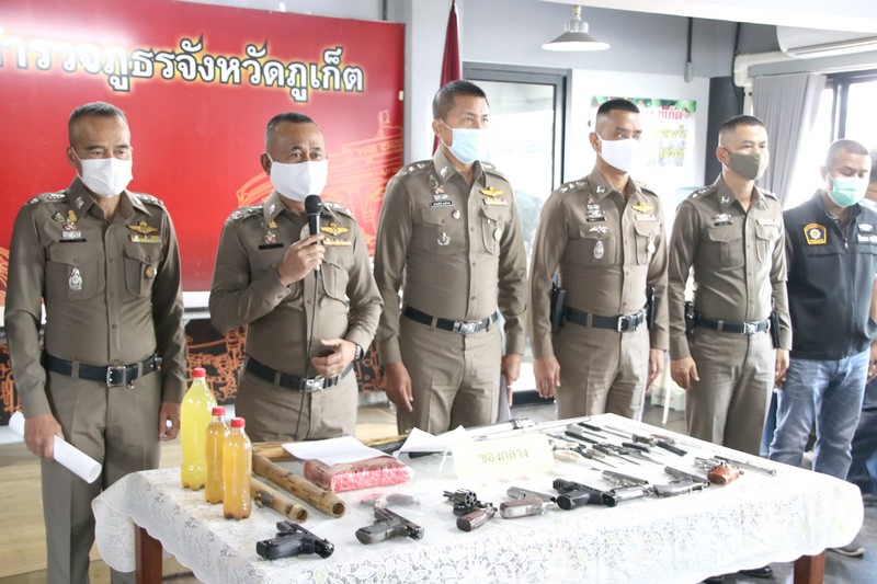 ตำรวจภูธรจังหวัดภูเก็ตแถลงผลการกวาดล้างจับอาวุธปืน6กระบอกและยาเสพติดจำนวนหนึ่ง