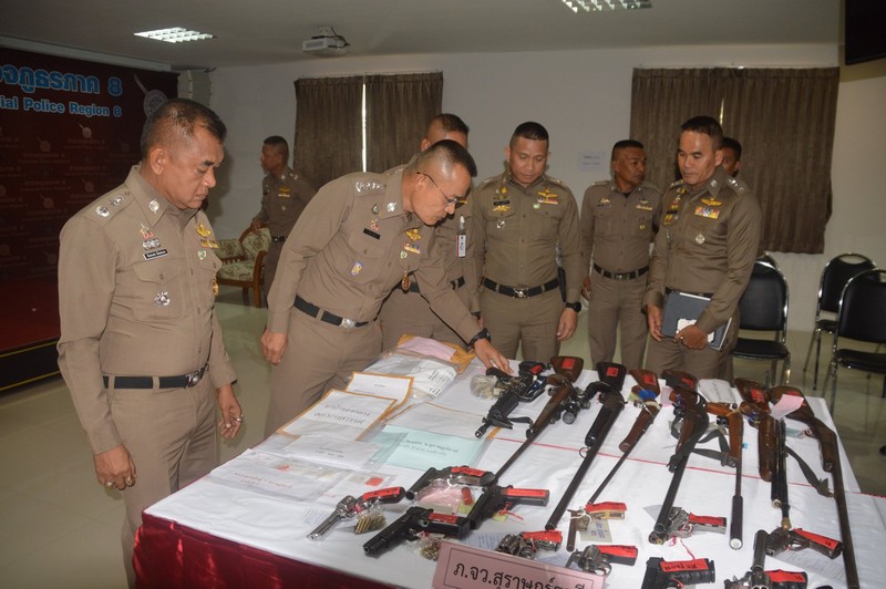 ตำรวจภูธรภาค 8 กวาดล้างอาชญากรรมยึดยาเสพติดและอาวุธปืนจำนวนมาก