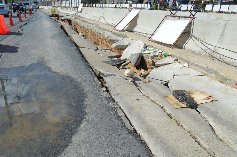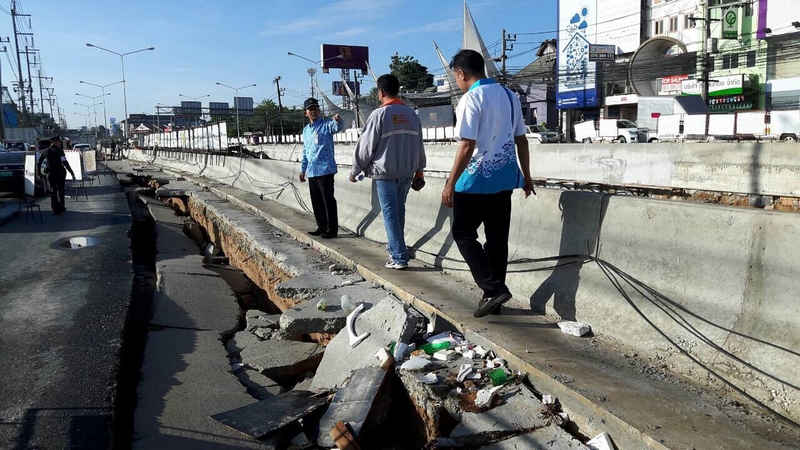ฝนตกนานนับชั่วโมงเมื่อคืนที่ผ่านมาส่งผลให้ถนนขาเข้าเมืองแยกโลตัสทรุดตัวเป็นหลุมยาวประมาณ 100-150 เมตรเจ้าหน้าที่ต้องนำแบรีเออร์มากั้นไว้พร้อมเร่งเปิดทางเบี่ยงเพื่อระบายรถในช่วงบ่ายนี้.