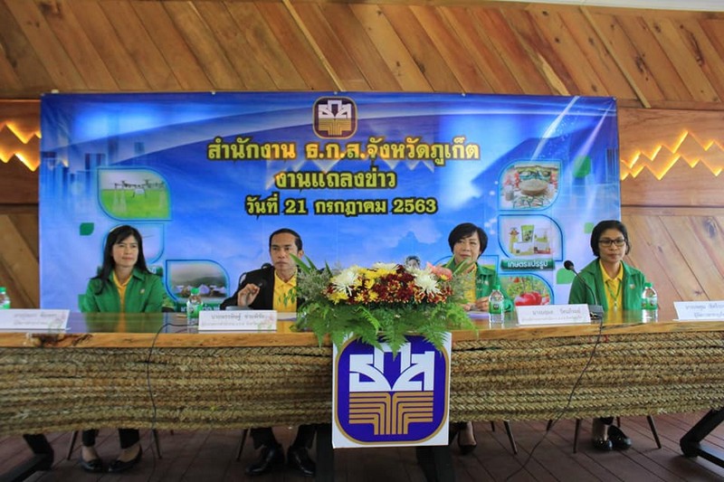วันที่ 21 กรกฎาคม 2563 ที่ร้านต้นโอ๊ค ต.เกาะแก้ว อ.เมือง จ.ภูเก็ต นายพรรษิษฐ์ ช่วยพิชัย ผู้อํานวยการสํานักงาน ธ.ก.ส. จังหวัดภูเก็ต เป็นประธานจัดแถลงข่าวผลการดําเนินงานของสํานักงาน ธ.ก.ส.จังหวัดภูเก็ต และสาขาในสังกัด ช่วงไตรมาสระหว่างเดือนเมษายน – เดือนมิถุนายน 2563 โดยมีนางนฤมล รัตนภิรมย์ ผู้ช่วยผู้อำนวยการสำนักงาน ธ.ก.ส. จังหวัดภูเก็ต และผู้จัดการสาขาในสังกัดเข้าร่วม