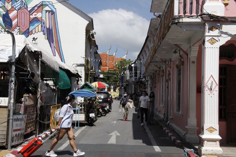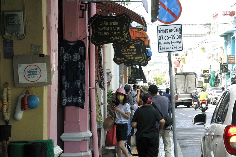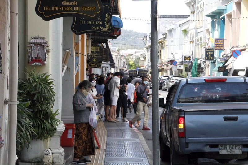 บรรยากาศบริเวณย่านเมืองเก่าภูเก็ต พบว่านักท่องเที่ยว และประชาชนชาวภูเก็ตมีการป้องกันตัวเองโดยทุกคนสวมใส่หน้ากากอนามัย และหน้ากากผ้ามากขึ้นหลังมีการ์ดตกไปบ้างช่วงก่อนหน้านี้ ส่วนตามร้านค้าต่างก็ได้มีมาตรการในการป้องกันโดยให้ลูกค้าลงทะเบียนผ่านแอปพลิเคชั่นไทยชนะและเจลแอลกอฮอล์สำหรับล้างมือไว้ให้ลูกค้าทุกคนที่มาใช้บริการ