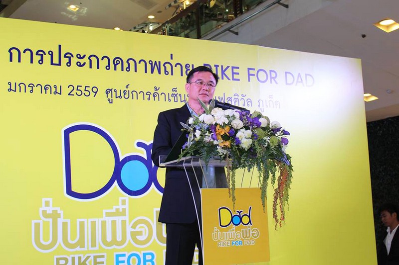 นายฉัททันต์ กุญชร ณ อยุธยา กล่าวว่า สืบเนื่องจากคณะกรรมการอำนวยการจัดกิจกรรมจักรยานเฉลิมพระเกียรติพระบาทสมเด็จพระเจ้าอยู่หัว เนื่องในโอกาสมหามงคลเฉลิมพระชนมพรรษา 88 พรรษา 5 ธันวาคม 2558 เห็นชอบให้กระทรวงการท่องเที่ยวและกีฬาและการท่องเที่ยวแห่งประเทศไทยดำเนินการจัดประกวดการถ่ายภาพกิจกรรมจักรยานเฉลิมพระเกียรติพระบาทสมเด็จพระเจ้าอยู่หัว “ปั่นเพื่อพ่อBIKE FOR DAD”ขึ้น ทั้งนี้มีผู้ส่งผลงานเข้าประกวดจากประชาชนชาวไทยและชาวต่างประเทศรวมทั้งสิ้น 9,020 ภาพ คณะทำงานได้ดำเนินการคัดเลือกภาพที่ได้รับรางวัลจำนวน 70 ภาพ และคัดเลือกภาพถ่ายที่ไม่ได้รับรางวัล รวมถึงภาพถ่ายจากต่างประเทศรวบรวมเป็นจำนวน 1,090ภาพ ซึ่งได้นำมาจัดแสดงเป็นนิทรรศการหมุนเวียนไปยังแต่ละภูมิภาคระหว่างเดือนมกราคม – กุมภาพันธ์ 2559 เพื่อให้ประชาชนในแต่ละพื้นที่ได้ร่วมชื่นชมและภาคภูมิใจไปด้วยกันโดยการสนับสนุนของบริษัทไทยเบฟเวอเรจจำกัด (มหาชน)ในครั้งนี้การท่องเที่ยวแห่งประเทศไทยได้เลือกจัดแสดงที่จังหวัดภูเก็ตเป็นตัวแทนของภูมิภาคภาคใต้โดยมีระยะเวลาตั้งแต่วันที่ 21-24 มกราคม 2559 ซึ่งได้รับการสนับสนุนเป็นจากศูนย์การค้าเซ็นทรัลเฟสติวัลภูเก็ต ที่ได้ให้ความอนุเคราะห์พื้นที่เพื่อจัดแสดง และหลังจากนี้จะหมุนเวียนไปจัดที่ศูนย์การค้าเซ็นทรัลพลาซ่าชลบุรี ศูนย์การค้าเซ็นทรัลเชียงใหม่แอร์พอร์ท และศูนย์การค้าเซ็นทรัลพลาซ่าจังหวัดอุบลราชธานี ในโอกาสต่อไป