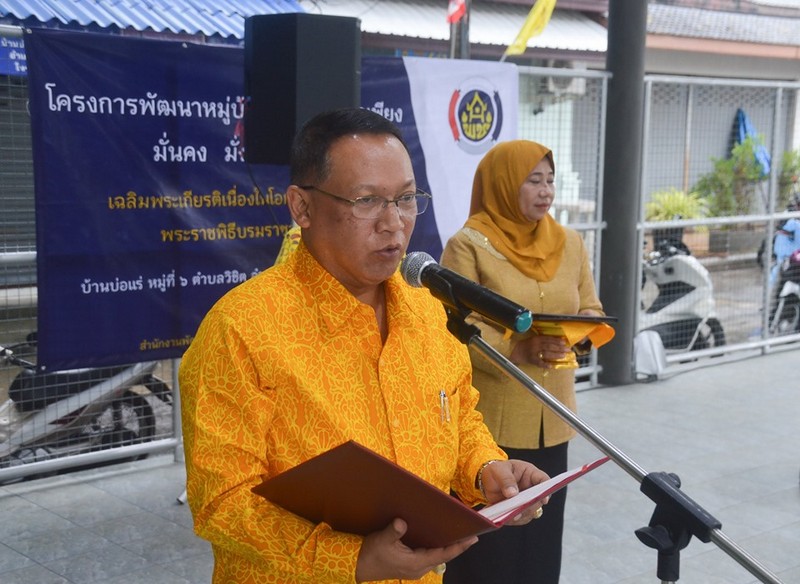 ว่าที่ร้อยตรี วิกรม จากที่ นายอำเภอเมืองภูเก็ต กล่าวว่า จังหวัดภูเก็ต โดยสำนักงานพัฒนาชุมชนจังหวัดภูเก็ต ได้จัดทำโครงการพัฒนาหมู่บ้านเศรษฐกิจพอเพียง มั่นคง มั่งคั่ง ยั่งยืน เฉลิมพระเกียรติเนื่องในโอกาสมหามงคลพระราชพิธีบรมราชาภิเษกในพื้นที่ โดยมีวัตถุประสงค์เพื่อเฉลิมพระเกียรติเนื่องในโอกาสมหามงคลพระราชพิธีบรมราชาภิเษก พร้อมทั้งสืบสาน รักษา และต่อยอดปรัชญาเศรษฐกิจพอเพียงของในหลวงรัชกาลที่ 9 มาใช้ในการพัฒนาหมู่บ้านและเพื่อสร้างความสุขให้แก่ประชาชน