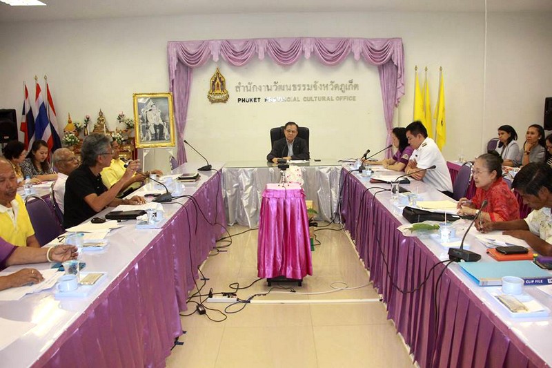 เมื่อวันที่ 11 มกราคม 2559 เวลา 13.30 น. ที่ ห้องประชุมชั้น 2 สำนักงานวัฒนธรรมจังหวัดภูเก็ต นายชาญ วงศ์สัตยนนท์ รองประธานสภาวัฒนธรรมจังหวัดภูเก็ต ในฐานะประธานคณะกรรมการอำนวยการ เป็นประธานการประชุมคณะกรรมการจัดทำโครงการจัดทำองค์ความรู้วัฒนธรรมจังหวัดภูเก็ต โดยมี นายอุทิศ ลิ้มสกุล ผู้ช่วย ททท. สำนักงานภูเก็ต พร้อมคณะคณะกรรมการที่เกี่ยวข้องเข้าร่วม เพื่อจัดทำองค์ความรู้ทางวัฒนธรรมที่มีอยู่ให้เป็นระบบ เป็นหมวดหมู่สามารถใช้อ้างอิง เผยแพร่และนำไปใช้บริหารจัดการได้