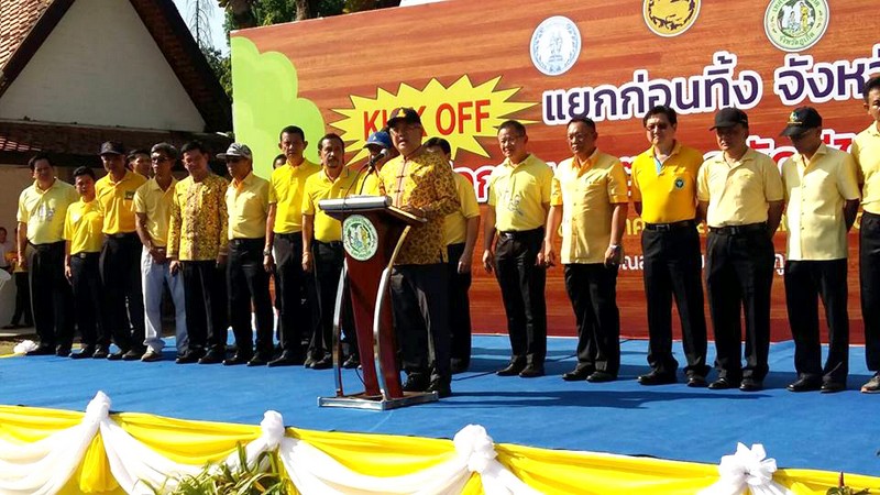 นายภัคพงศ์ ทวิพัฒน์ ผู้ว่าราชการการจังหวัดภูเก็ต กล่าวว่านับแต่อดีตจนถึงปัจจุบัน ปัญหาขยะมูลฝอยเป็นปัญหาสำคัญที่อยู่คู่สังคมไทย และจังหวัดภูเก็ตมาอย่างยาวนานและนับวันยิ่งมีแนวโน้มทวีความรุนแรงมากขึ้น สาเหตุเนื่องมาจากการเพิ่มขึ้นของปริมาณขยะมูลฝอยตามอัตราการเพิ่มขึ้นของประชากรการขยายตัวทางเศรษฐกิจและการเปลี่ยนแปลงพฤติกรรมในการบริโภคของประชาชน แม้ว่าองค์กรปกครองส่วนท้องถิ่นซึ่งเป็นหน่วยงานที่มีหน้าที่รับผิดชอบในการจัดการขยะมูลฝอยทางการจัดเก็บการเคลื่อนย้ายรวมทั้งทำลาย จะได้รับการจัดสรรงบในการก่อสร้างระบบจัดการขยะมูลฝอยต่างๆแต่ก็ยังไม่เพียงพอกับ ปริมาณขยะมูลฝอยที่มีแนวโน้มเพิ่มขึ้นสูงอย่างต่อเนื่องทุกปี รัฐบาลจึงตั้งหนักถึงความสำคัญของปัญหาดังกล่าวและต้องการให้ทุกภาคส่วนของสังคมไม่ว่าจะเป็นหน่วยของรัฐภาคเอกชนและภาคประชาสังคมรวมกันแก้ไขปัญหาโดยสนับสนุนและขยายผลให้ประชาชนลดปริมาณขยะมูลฝอยตามหลักการ 3rs reduce reuse recycle หรือที่เรียกว่าหลักการ 3 ช ดังนั้นกระทรวงมหาดไทยจึงนำแนว นโยบายของรัฐบาลมากำหนดเป็นแผนรณรงค์แยกก่อนทิ้งเพื่อสร้างจิตสำนึกและกระตุ้นให้ประชาชนมีส่วนร่วมในการจัดการขยะให้ถูกต้องตามหลักวิชาการทั้งในระดับครัวเรือนชุมชนและสังคมเพื่อป้องกันปัญหาขยะล้นเมืองในอนาคต ถือเป็นจุดเริ่มต้นที่ยิ่งใหญ่ที่ชาวภูเก็ตทุกท่านจะได้เข้าร่วมการจัดการขยะตั้งแต่ในระดับครัวเรือน ลดปริมาณขยะต้นทางเพื่อให้จังหวัดภูเก็ตเป็นจังหวัดสะอาดในอนาคต