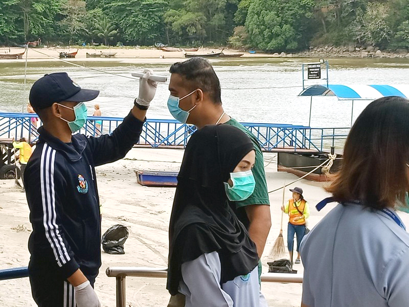 โดยเจ้าหน้าที่ได้ทำการตรวจวัดอุณภูมิของร่างกายด้วยเครื่องเทอร์โมอินฟาเรด