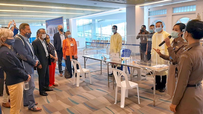 โดยทันทีที่เดินทางถึงสนามบินภูเก็ต คณะทูตจาก 15 ประเทศได้รับฟังบรรยายเรื่องมาตรการการคัดกรองนักท่องเที่ยว กลุ่ม (Special Tourist VISA: STV) ที่สนามบิน ซึ่งเป็นกระบวนการคัดกรองผู้โดยสารของด่านควบคุมโรคติดต่อระหว่างประเทศ เพื่อรองรับผู้โดยสารและนักท่องเที่ยว// นักธุรกิจกลุ่มพิเศษ (STV) ตามนโยบายรัฐบาลที่จะผ่อนคลายมาตรการให้สามารถเดินทางเข้าประเทศได้มากขึ้น