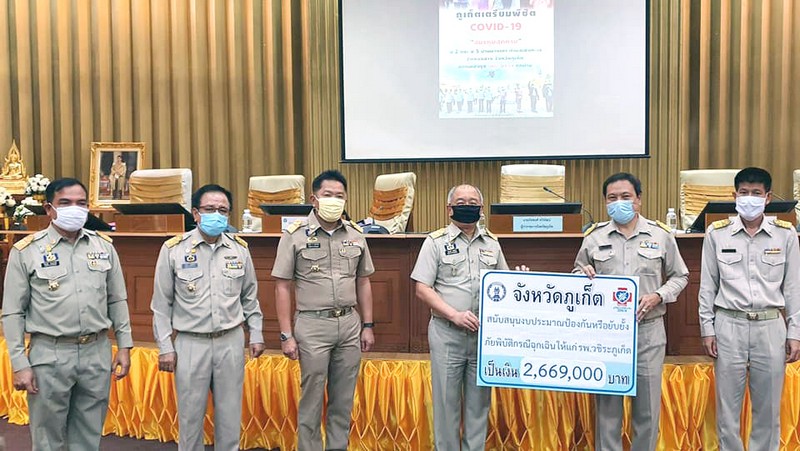 ภูเก็ตมอบเงินกว่า 3 ล้านบาท สนับสนุนงบประมาณป้องกันหรือยับยั้ง ภัยพิบัติฉุกเฉินให้แก่ โรงพยาบาลวชิระภูเก็ต และสำนักงานสาธารณสุขจังหวัดภูเก็ต เพื่อใช้ในการป้องกันควบคุมเชื้อไวรัส COVID-19 “PHUKET MODEL”