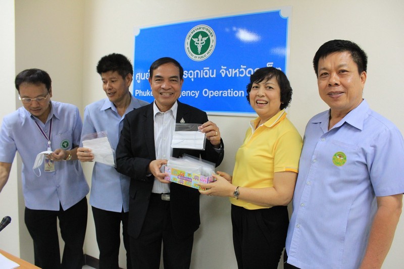 และก่อนปิดประชุม นายพิเชษฐ์ ปาณะพงศ์ รองผู้ว่าราชการจังหวัดภูเก็ต ได้รับมอบอุปกรณ์ สำหรับป้องกันเชื้อโรค ประกอบด้วย หน้ากากอนามัยและเจลล้างมือ จากเภสัชกร เกียรติศักดิ์ ปานรังศรี ประธานชมรมเภสัชกรชุมชนจังหวัดภูเก็ต เพื่อ ให้ทางสำนักงานสาธารณสุขจังหวัดภูเก็ตนำไปแจกจ่ายให้กับพี่น้องประชาชนได้ใช้ประโยชน์ต่อไป
