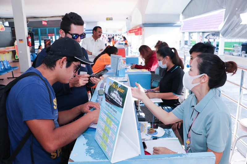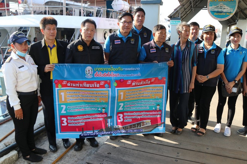 นายแพทย์สาธารณสุขจังหวัดภูเก็ต ผู้อำนวยการสำนักงานเจ้าท่าภูมิภาคที่ 5 สาขาภูเก็ต และเจ้าหน้าที่ที่เกี่ยวข้อง ได้ลงพื้นที่ที่บริเวณท่าเทียบเรือรัษฎา ดูแลนักท่องเที่ยว เพื่อป้องกันการแพร่ระบาด