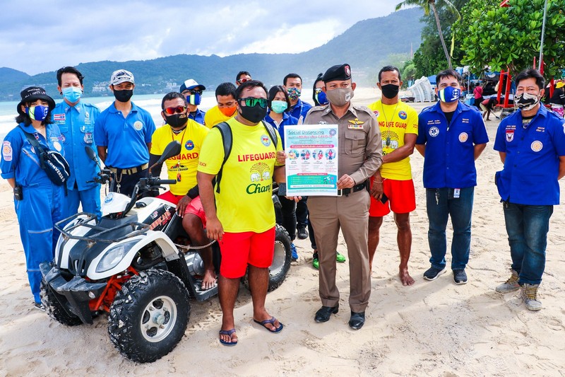 น.ส.เฉลิมลักษณ์ เก็บทรัพย์ นายกเทศมนตรีเมืองป่าตอง กล่าวว่า วันนี้เราเปิดให้ชายหาดให้นักท่องเที่ยวทั้งไทยและต่างชาติเข้าพื้นที่ได้แล้ว พร้อมทั้งได้จัดเจ้าหน้าที่ทั้งไลฟ์การ์ดและเทศกิจคอยให้คำแนะนำนักท่องเที่ยว ที่จะต้องปฏิบัติตามมาตรการการเฝ้าระวังการแพร่ระบาดของไวรัสโควิด-19 รอบใหม่ โดยทุกคนที่จะมาเที่ยวชายหาดจะต้องสวมหน้ากากอนามัย พกเจลล้างมือ ทิ้งระยะห่างทางสังคม ส่วนกลุ่มผู้ประกอบการบนชายหาด 7 อาชีพ และสตรีทฟูด เทศบาลได้สร้างความมั่นใจให้แก่นักท่องเที่ยวที่มาเที่ยวยังหาดป่าตอง ด้วยการเชิญกลุ่มอาชีพต่างๆ มาทำความเข้าใจถึงแนวทางการประกอบอาชีพหลังโควิด-19 เพื่อให้เกิดความมั่นใจทั้งผู้ให้บริการและผู้ใช้บริการ ว่ามาเที่ยวป่าตองแล้วปลอดภัยอย่างแน่นอน