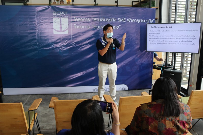 บริษัท โบ๊ทพัฒนา จึงได้เล็งเห็นถึงความสำคัญของผลกระทบจากสถานการณ์การแพร่ระบาดของเชื้อไวรัสโควิด-19 จึงได้จัดกิจกรรม โครงการ “สานฝันธุรกิจ SME ฝ่าพายุเศรษฐกิจ” ขึ้นมาช่วยเหลือธุรกิจ SME ที่ได้รับผลกระทบเพื่อเปิดโอกาสให้ธุรกิจ SME ดำเนินต่อไปได้ โดยผู้ประกอบการ SME สามารถส่งคลิป VDO (แผนธุรกิจของตนเอง)ไม่ต่ำกว่า 2 นาที แต่ไม่เกิน 5 นาทีมายัง เฟสบุ๊ค บริษัท Boatpattana ในช่องทาง Inbox ตั้งแต่วันที่ 5-25 มิถุนายน 2563 เพื่อชิงเงินรางวัลสูงสุด 50,000 บาท เพื่อให้ได้ไปสานฝันธุรกิจ SME ต่อไปโดยน้อมนำปรัชญาเศรษฐกิจพอเพียงมาใช้เป็นหลักในการดำเนินการประกอบธุรกิจของตนให้ยั่งยืน