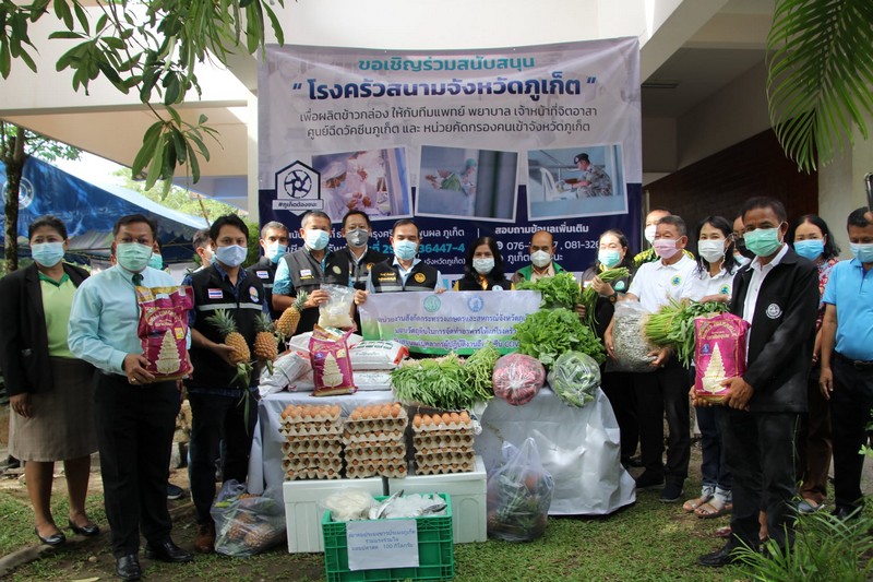 วันที่ 19 พฤษภาคม 2564 ที่ ศาลาประชาคมจังหวัดภูเก็ตอำเภอเมืองภูเก็ต นายพิเชษฐ์ ปาณะพงศ์ รองผู้ว่าราชการจังหวัดภูเก็ต เป็นประธานในการรับมอบวัตถุดิบจากหน่วยงานในสังกัดกระทรวงเกษตรและสหกรณ์ในพื้นที่จังหวัดภูเก็ต ร่วมกับสมาคมประมงภูเก็ตและชมรมในเครือข่ายของกระทรวงเกษตรและสหกรณ์ในจังหวัดภูเก็ต นำวัตถุดิบที่ใช้ในการปรุงอาหารมอบให้กับโรงครัวสนามภูเก็ต เพื่อใช้ในการปรุงอาหารกล่องให้กับทีมแพทย์ พยาบาล บุคลากรทางการแพทย์ และจิตอาสาที่ร่วมกันบริการฉีดวัคซีนให้กับพี่น้องประชาชนจังหวัดภูเก็ต ทั้ง 6 จุด ได้แก่ ที่โรงยิม 4,000 ที่นั่ง สะพานหิน ศูนย์การค้าจังซีลอน ป่าตอง โรงแรมออร์คิด กะรน ศูนย์การค้าเซ็นทรัลภูเก็ต โรงแรมอังสนาลากูน่า อำเภอถลาง และที่สนามบินภูเก็ต