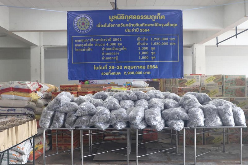 มูลนิธิกุศลธรรมภูเก็ตร่วมกับจังหวัดภูเก็ต เตรียมแจกถุงยังชีพ 4,000 ชุด ให้ชาวบ้านทั้ง 3 อำเภอ บรรเทาความเดือดร้อนจากการแพร่ระบาดโควิดระบาด ระหว่าง 29-30 พ.ค.นี้ พร้อมมอบทุนการศึกษาและข้าวสารให้โรงเรียนต่างๆ เนื่องในพิธีสักการะและเฉลิมฉลองวันเกิดเทพเจ้าโป๊ยจุนเซี่ยฮุด
