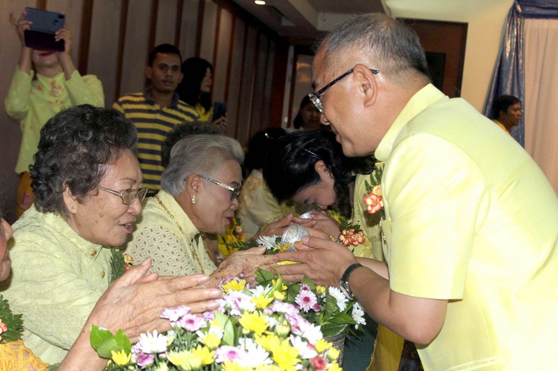 ผู้ว่าราชการจังหวัดภูเก็ตนำหัวหน้าส่วนราชการข้าราชการเจ้าหน้าที่และสมาชิกเหล่ากาชาดจังหวัดภูเก็ตร่วมรดน้ำขอพรจากผู้สูงอายุเพื่อร่วมสืบสานประเพณีสงกรานต์ประจำปี 2562