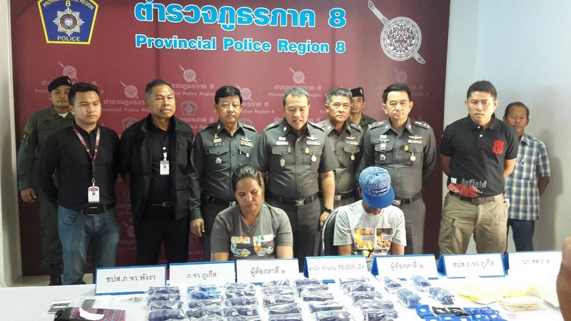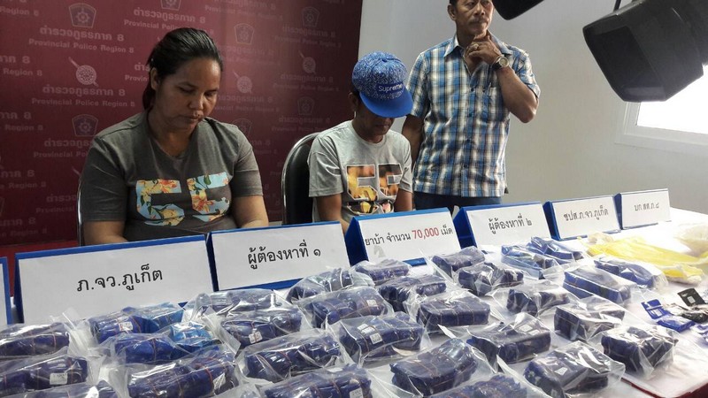 เมื่อเวลา 10.00 น.วันที่ 11 มกราคม 2559 พล.ต.ท. เทศา ศิริวาโท ผู้บัญชาการตำรวจภูธร ภาค 8 พร้อมด้วย พล.ต.ต.ธีระพล ทิพย์เจริญ ผู้บังคับการตำรวจภูธรจังหวัดภูเก็ต /พล.ต.ต.ชินรัตน์ ฤทธาคนานนท์ ผู้บัญชาการสืบสวนตำรวจภูธรภาค 8 และตำรวจชุดจับกุมซึ่งนำโดยพ.ต.ท.ประ วิทย์ เอ้งฉ้วน รองผู้กำกับการสืบสวนตำรวจภูธรจังหวัดภูเก็ต ร่วมแถลงข่าวจับกุม 2 ผู้ต้องหาคดียาเสพติดชาว อำเภอชะอวด จังหวัดนครศรีธรรมราช นางจิราภร หรือจิรา พรหมหนู อายุ 42 ปีและนายสมนึก รามณี อายุ 51 ปี พร้อมด้วยของกลางยาเสพติดให้โทษ ประเภท 1 (ยาบ้า) จำนวน 35 มัด รวมจำนวนทั้งสิ้น 7 หมื่นเม็ด โดยกล่าวหา “ร่วมกันมียาเสพติดให้โทษ ประเภท 1(ยาบ้า) ไว้ในครอบครองเพื่อจำหน่ายโดยไม่ได้รับอนุญาตและร่วมกันพยายามจำหน่ายยาเสพติดให้โทษ ประเภท 1(ยาบ้า) โดยไม่ได้รับอนุญาต”