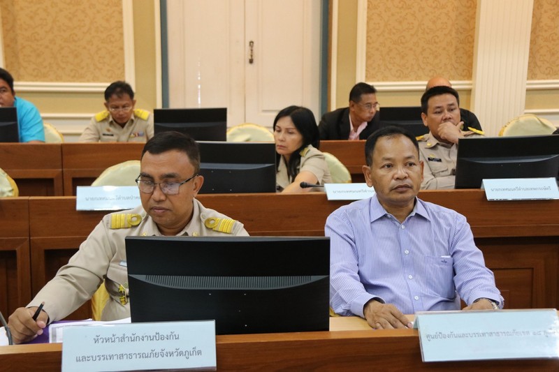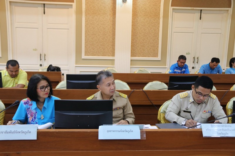 นายวงศกร นุ่นชูคันธ์ รองผู้ว่าราชการจังหวัดภูเก็ต กล่าวรายงานสภาพปัญหาและแนวทางการแก้ไขปัญหาภัยแล้งในพื้นที่จังหวัดภูเก็ต ว่า ปริมาณการใช้น้ำทั้งหมด 80 ล้านลูกบาศก์เมตรต่อปี(ข้อมูลปี 2562) โดยอยู่ในเขตของการประปาส่วนภูมิภาคสาขาภูเก็ตและการประปาเทศบาลนครภูเก็ตประมาณ 48 ล้านลูกบาศก์เมตรต่อปี คิดเป็น 60% ประกอบด้วย อ่างเก็บน้ำของโครงการชลประทาน 3 แห่ง,ปริมาณฝนเติมอ่าง,สูบน้ำเติมอ่างขุมเหมืองสาธารณะเอกชนบางแห่ง และอยู่นอกเขตของการประปาส่วนภูมิภาคสาขาภูเก็ตและการประปาเทศบาลนครภูเก็ตประมาณ 32 ล้านลูกบาศก์เมตรต่อปีคิดเป็น 40 %