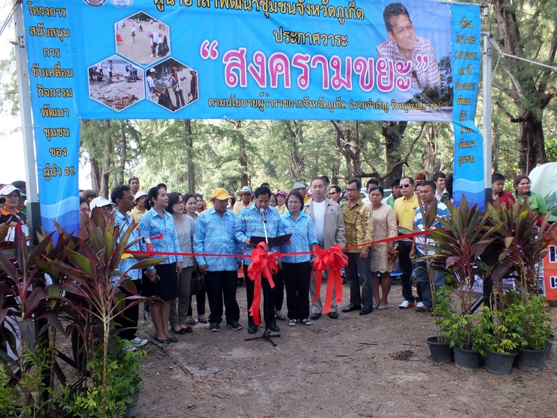 เมื่อวันที่ 30 มกราคม 2559 เวลา 14.00 น. ณ อุทยานแห่งชาติสิรินาถ อำเภอเมือง จังหวัดภูเก็ต นายประเจียด อักษรธรรมกุล เป็นประธานเปิดตลาดนัดชุมชน ไทยช่วยไทย คนไทยยิ้มได้ และกิจกรรมพลังอาสาพัฒนาชุมชน ประกาศวาระ “สงครมขยะ โดยมี นางวรรณธนา ไผ่สีดำ พัฒนาการการจังหวัดภูเก็ต นางอโนมา วงษ์ใหญ่ ผู้อำนวยการ การททท. ภูเก็ต หัวหน้าส่วนราชการ เข้าร่วม