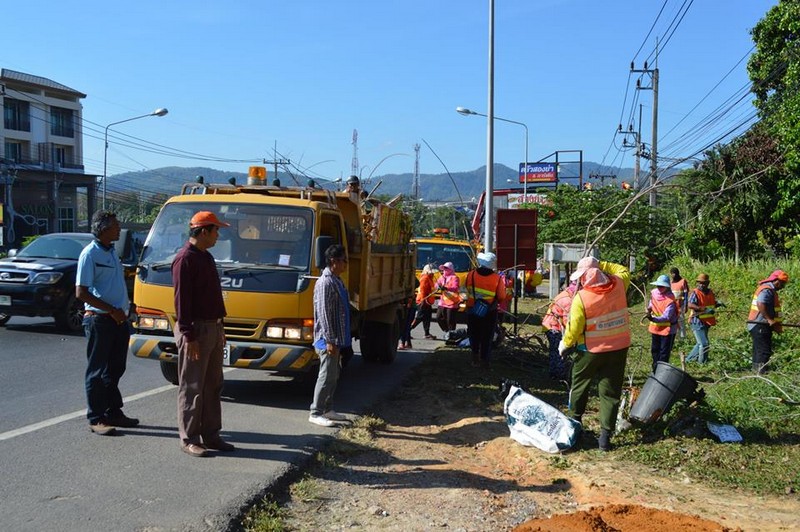 อำเภอถลางนำร่องโครงการถลางเมืองสะอาดโดยการเก็บขยะและตัดแต่งกิ่งไม้สองข้างถนน จากวงเวียนอนุสาวรีย์ท้าวเทพกระษัตรีถึงแยกอ่าวปอ
