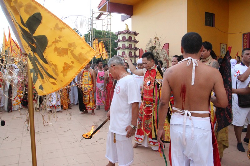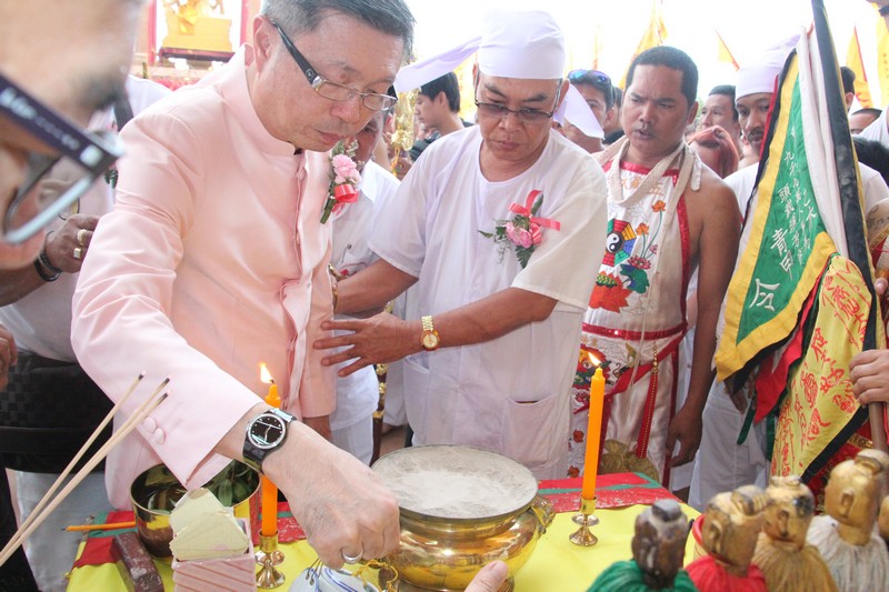 เมื่อวันที่ 30 กันยายน 2559 เวลา 17.30 น. ที่ อ้ามซุ่นบุ่นต๋อง(หล่อโรง) จังหวัดภูเก็ต นายนายจิรเดช วรเพียรกุล อดีตผู้ช่วย รมต.กระทรวงการคลัง เป็นประธานจุดตะเกียง พิธียกเสาโกเต้ง และอัญเชิญตะเกียง 9 ดวง ขึ้นสู่ยอดเสาโกเต้ง ซึ่งเป็นสัญลักษณ์ว่า ประเพณีถือศีลกินผักได้เริ่มต้นขึ้นแล้ว โดยมีแขกผู้มีเกียรติ และประชาชนชาวภูเก็ตเข้าร่วมเต็มลานหน้าศาลเจ้า