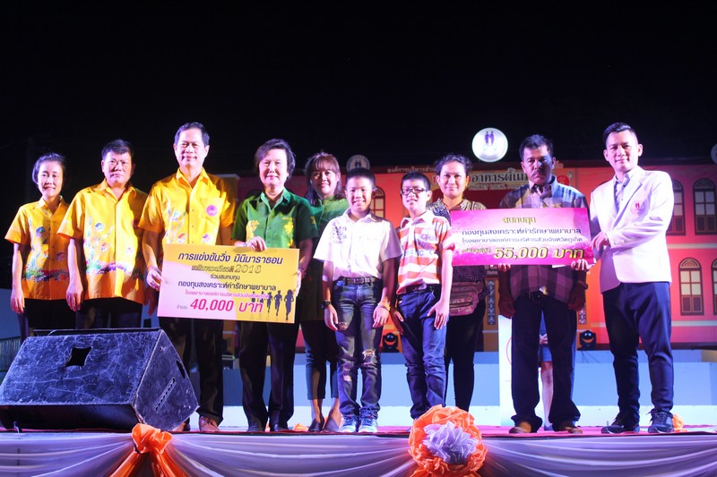 นอกจากนี้ ได้มีการมอบเงินบริจาคเพื่อสมทบทุนสงเคราะห์ค่ารักษาพยาบาลโรงพยาบาล อบจ.ภูเก็ต โดย นพ.พัลลภ เททวงศ์ รองผู้อำนวยการฝ่ายการแพทย์ โรงพยาบาล อบจ.ภูเก็ต เป็นผู้รับมอบ จากวงเล็กเล็ก โรงเรียน อบจ.บ้านไม้เรียบ (ตันติโกวิทบำรุง) เป็นเงิน 4,815 บาท จากร้านจำหน่ายเสื้อผ้าและผลิตภัณฑ์ ร้านนวด และร้านเครื่องเล่น เป็นเงิน 55,000 บาท.