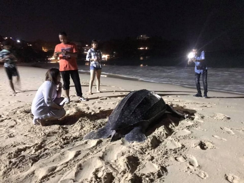 เจ้าหน้าที่ได้กันพื้นที่เพื่อไม่ให้ประชาชนและนักท่องเที่ยวรบกวนการวางไข่ ก่อนเข้าทำการวัดขนาดแม่เต่า พบว่า กระดองความยาว 150 ซม. กว้าง 119 ซม. ใบพายหน้าซ้ายยาว 86 ซม. ใบพายหน้าขวายาว 83 ซม. น้ำหนักประมาณ 300 กก. โดยแม่เต่าได้เริ่มขึ้นวางไข่ ตั้งแต่ เวลา 00.50 น.เสร็จเรียบร้อยและกลับลงสู่ทะเลในเวลา 04.30 น. จากนั้นนักวิชาการได้ทำการสำรวจ ประเมิน ความสมบูรณ์ไข่เต่า ซึ่งเบื้องต้นคาดว่ามีประมาณ 50 – 60 ฟอง อย่างไรก็ตาม เจ้าหน้าที่ได้ทำการปักหลักกั้นแนวป้องกันรังไข่เต่าเป็นการชั่วคราว พร้อมติดตั้งเครื่องวัดอุณหภูมิ พื้นที่จุดวางไข่ ก่อนดำเนินการล้อมคอกและจัดกำลังเจ้าหน้าที่ดูแลความปลอดภัย ในช่วงเช้าวันนี้