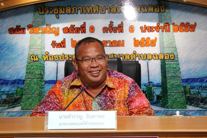 นายสำราญ จินดาพล นายกเทศมนตรีตำบลฉลอง กล่าวว่า “พื้นที่ตำบลฉลองมักจะประสบกับสภาพน้ำท่วมขังเป็นประจำทุกปีสาเหตุมาจากมีปริมาณน้ำหลากจากภูเขาที่อยู่รอบๆ เขตพื้นที่ตำบลฉลองมีมากกว่าความสามารถในการระบายน้ำของลำคลองที่ไหลผ่านพื้นที่เทศบาลตำบลฉลองประกอบกับสภาพคูคลอง และทางระบายน้ำธรรมชาติมีขนาดแคบ ถูกรุกล้ำจนมีขนาดเล็กและมีการถมดินเพื่อสิ่งปลูกสร้างต่าง ๆ และรัฐบาลได้เล็งเห็นความสำคัญของปัญหาน้ำท่วมจังหวัดภูเก็ตจึงมอบหมายให้กรมโยธาธิการและผังเมืองดำเนินการศึกษาและออกแบบระบบโครงสร้างพื้นฐานพื้นที่ชุมชนหลักจังหวัดภูเก็ต โดยได้ว่าจ้าง บจ.โปรเกรส เทคโนโลยี คอนซัลแท็นส์ ให้ดำเนินการศึกษาและออกแบบก่อสร้างระบบป้องกันน้ำท่วมและระบบระบายน้ำพื้นที่ชุมชนหลัก 4 พื้นที่ประกอบด้วย 1) พื้นที่เทศบาลนครภูเก็ตและชุมชนต่อเนื่อง 2)พื้นที่เทศบาลเมืองกะทู้และชุมชนต่อเนื่อง 3) พื้นที่เทศบาลเมืองป่าตองและชุมชนต่อเนื่อง และ 4) พื้นที่เทศบาลตำบลฉลองและชุมชนต่อเนื่อง ซึ่งใช้ระยะเวลาดำเนินการ 540 วัน นับตั้งแต่ วันที่ 20 มกราคม 2558 เพื่อให้การศึกษาและออกแบบก่อสร้างระบบป้องกันน้ำท่วมและระบบระบายน้ำสัมฤทธิ์ผลตามวัตถุประสงค์ของโครงการและสอดคล้องกับความต้องการของชุมชนกรมโยธาธิการและผังเมือง โดยความร่วมมือของจังหวัดภูเก็ต และเทศบาลตำบลฉลองจึงได้จัดให้มีการประชุมเพื่อชี้แจงรายละเอียดองค์ประกอบโครงการและรับฟังความคิดเห็นครั้งที่ 1 เพื่อนำเสนอแนวทางการแก้ไขปัญหาน้ำท่วมและการระบายน้ำ พร้อมชี้แจงระเอียดองค์ประกอบโครงการระบบป้องกันน้ำท่วมและระบบระบายน้ำและรับฟังความคิดเห็น ข้อเสนอแนะจากท้องถิ่น ซึ่งจะได้นำผลการประชุมดังกล่าวไปปรับปรุงแนวทางแก้ไขปัญหาน้ำท่วมให้สอดคล้องกับความกับต้องการของท้องถิ่นเพื่อนำไปจัดทำรายละเอียดก่อสร้างให้สมบูรณ์ต่อไป”
