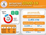 สถานการณ์โรคติดเชื้อไวรัสโคโรนา 2019 (COVID – 19) จังหวัดภูเก็ต รายใหม... เมษายน 14 ข่าวทั่วไป จังหวัดภูเก็ตมีผู้ป่วยยืนยันโรคโควิด-19 แล้วจำนวน 188 ร […]