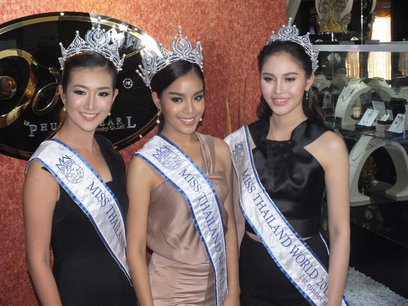 เมื่อเวลา 11.00 น.วันนี้ (22 ม.ค.59) ที่บริษัทภูเก็ต เพิร์ล กรุ๊ป จำกัด ผู้ผลิตและจำหน่ายผลิตภัณฑ์จากไข่มุกครบวงจร อำเภอเมือง จังหวัดภูเก็ต คณะ Miss Thailand World 2015 ประกอบด้วยนางสาวธันยชนก มูลนิลตา มิสไทยแลนด์เวิลด์ 2015 นางสาวมิณทร์ลดา สว่างโศก รองอันดับ 1 และนางสาวนันทวัน เรืองฤทธิ์ รองอันดับ 2 นำช่อดอกไม้แสดงความขอบคุณต่อทางบริษัทภูเก็ต เพิร์ล กรุ๊ป ที่ให้การสนับสนุนการจัดประกวดฯ โดยมีนางสาวรัตติกรณ์ อินทรเจริญ และนายศรัณย์ สมรักษ์ คณะกรรมการบริหาร บริษัทภูเก็ต เพิร์ล กรุ๊ป จำกัด รับมอบ